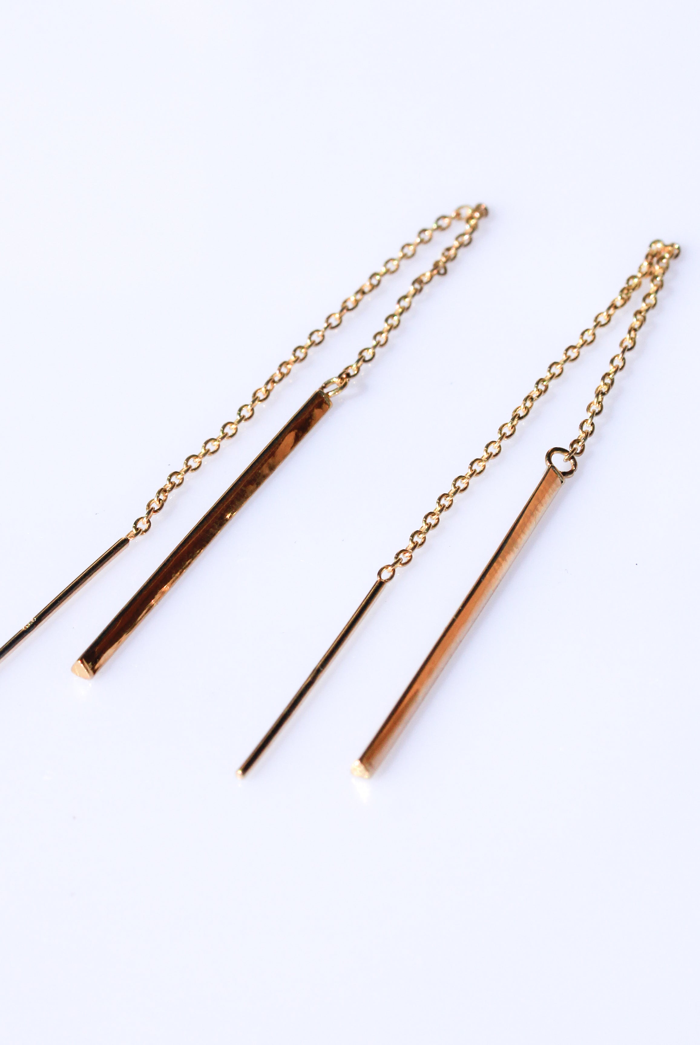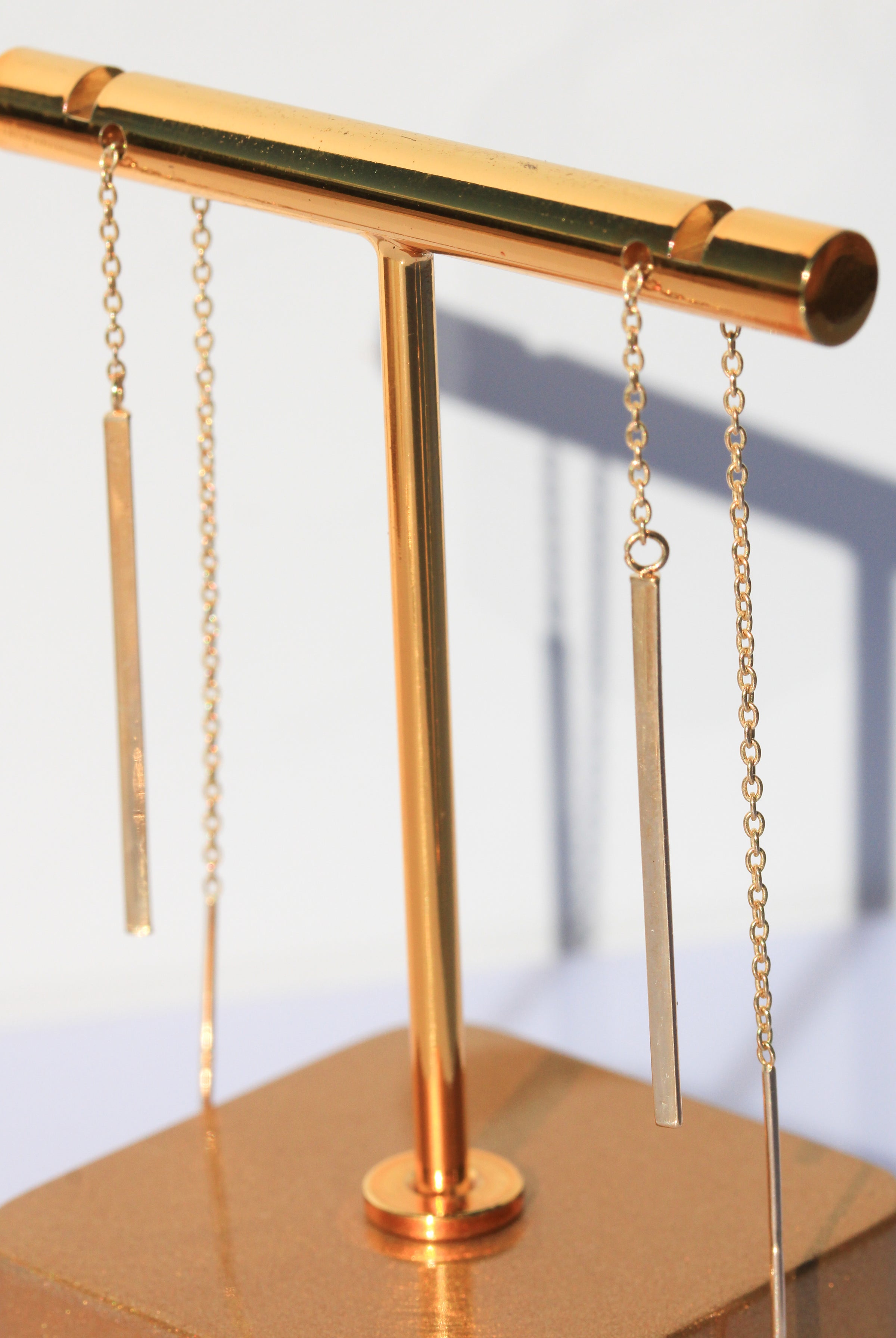 9ct Yellow Gold Thread Earrings with Bar drops.